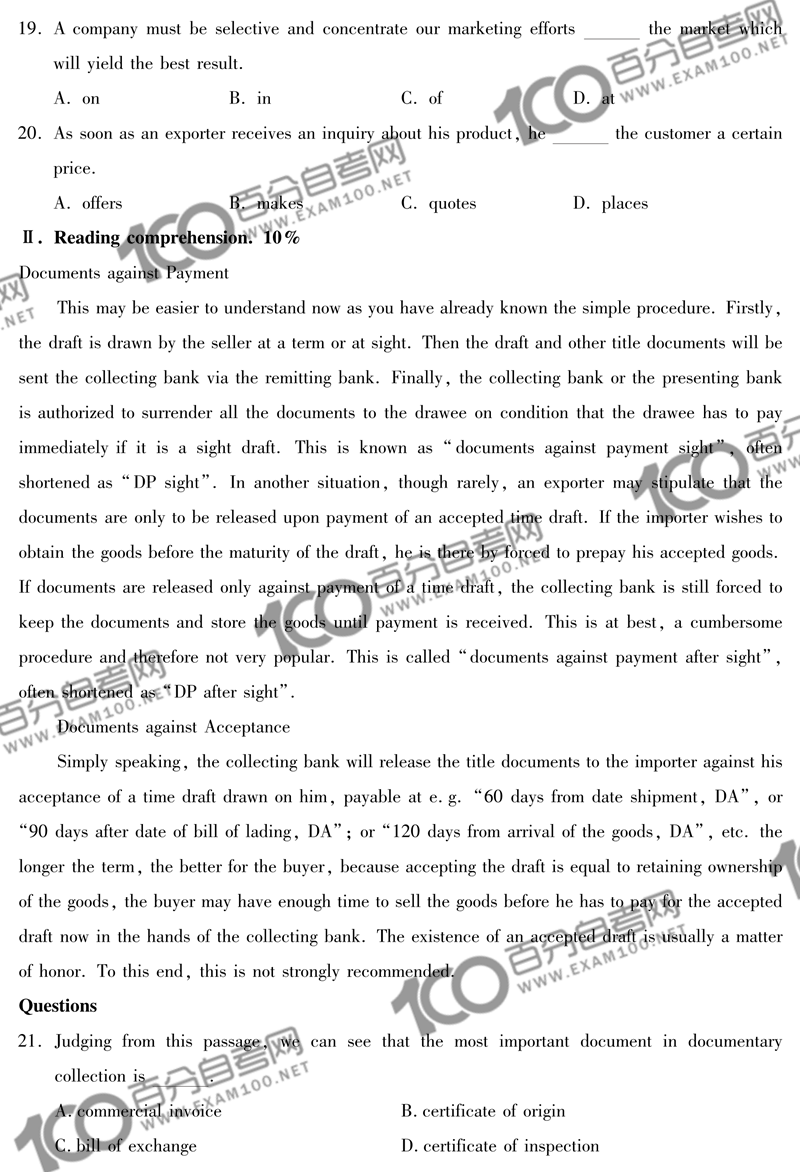 Copyright2018-2021 浙江自考网(zj.exam100.net)All Rights Reserverd 蜀ICP备18127099号 增值电信业务经营许可证:川B2-20190782